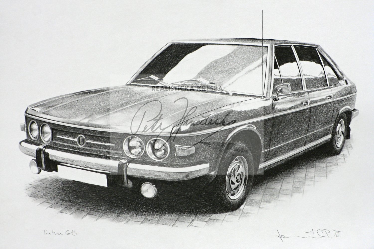 Reprodukce kresby TATRA 613, velikost 30 x 42 cm